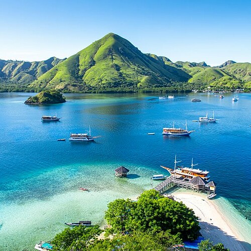Mit über 17.000 Inseln ist Indonesien der größte Inselstaat der Welt – ein faszinierendes Mosaik aus tropischen Landschaften, Kulturen und Religionen. Würde man eine Karte Indonesiens über die von Europa legen, würde das Land von Südschweden bis nach Süditalien reichen. Dementsprechend vielfältig präsentiert der Archipel sich seinen Besuchern. Sumatra – die zweitgrößte Insel Indonesiens – steht für grandiose Gebirgslandschaften und tropische Regenwälder, die zum UNESCO Weltnaturerbe gehören. Darin sind seltene Tierarten zu Hause, wie der stark bedrohte Orang-Utan. Doch auch Languren, Makaken und bunte Nashornvögel buhlen auf einer Wanderung im Gunung Leuser Nationalpark um die Aufmerksamkeit der Reisenden. Ein wenig weiter östlich ragt die Insel Samosir imposant aus dem riesigen Lake Toba auf. Sofort fällt der Blick hier auf die kunstvollen Batak-Häuser mit charakteristisch geschwungenen Dächern. Das kulturelle Herz Indonesiens jedoch schlägt auf Java, die bedeutendste der Großen Sundainseln. Inmitten einer üppigen Tropenlandschaft und unzähligen Reisfeldern liegen die buddhistische Stufenpyramide Borobudur sowie die acht Schreine des hinduistischen Prambanan Tempel – beide Weltkulturerbe. Eine Inselwelt wie aus dem Bilderbuch erwartet im Komodo Nationalpark. Spätestens wenn Sie zum Sonnenaufgang ihren Blick über die Buchten der Insel Padar schweifen lassen, werden Sie Indonesien und Ihre Reise in das faszinierende Inselreich für immer in Ihr Herz geschlossen haben!